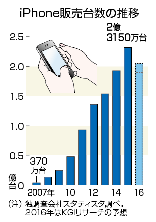 情報源: 【図解・経済】iPhone販売台数の推移(2016年4月):時事ドットコム