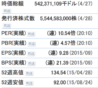時価総額 5423億ドル (2016-04-27)