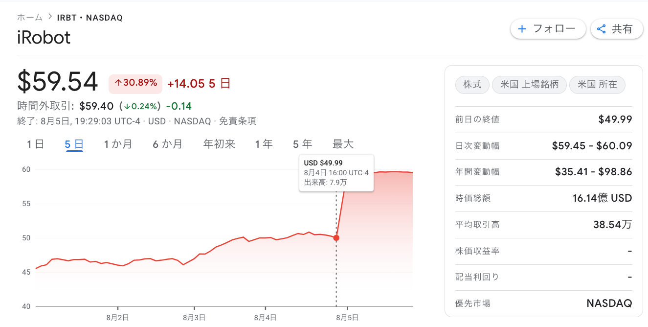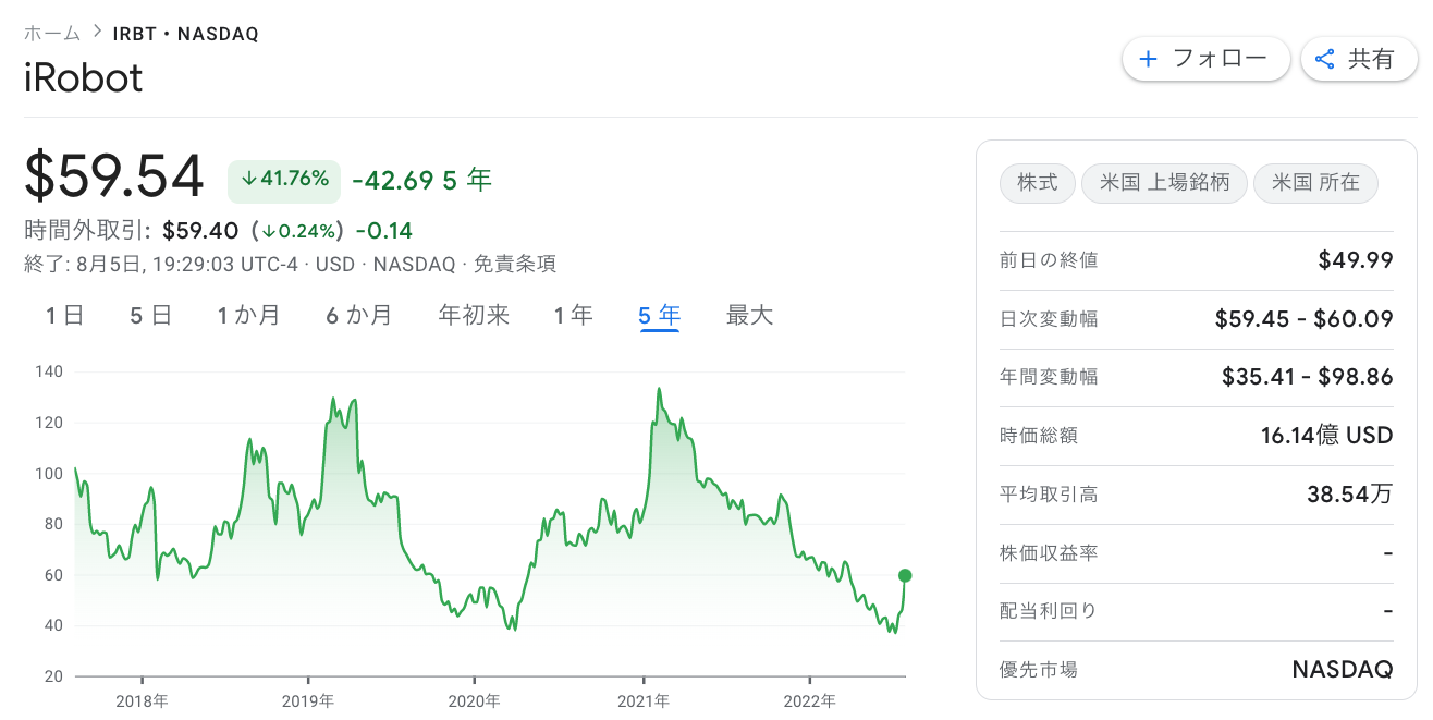 https://www.google.com/finance/quote/IRBT:NASDAQ?window=5D