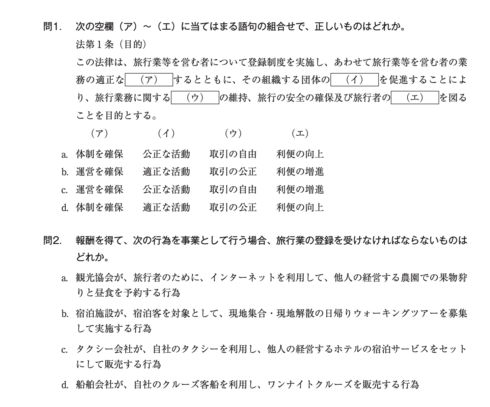 ① 旅行業法令(100点満点)