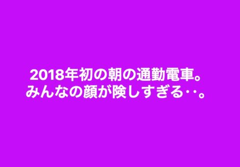 朝の通勤電車の人々、険しい顔をして、誰も笑っていない。