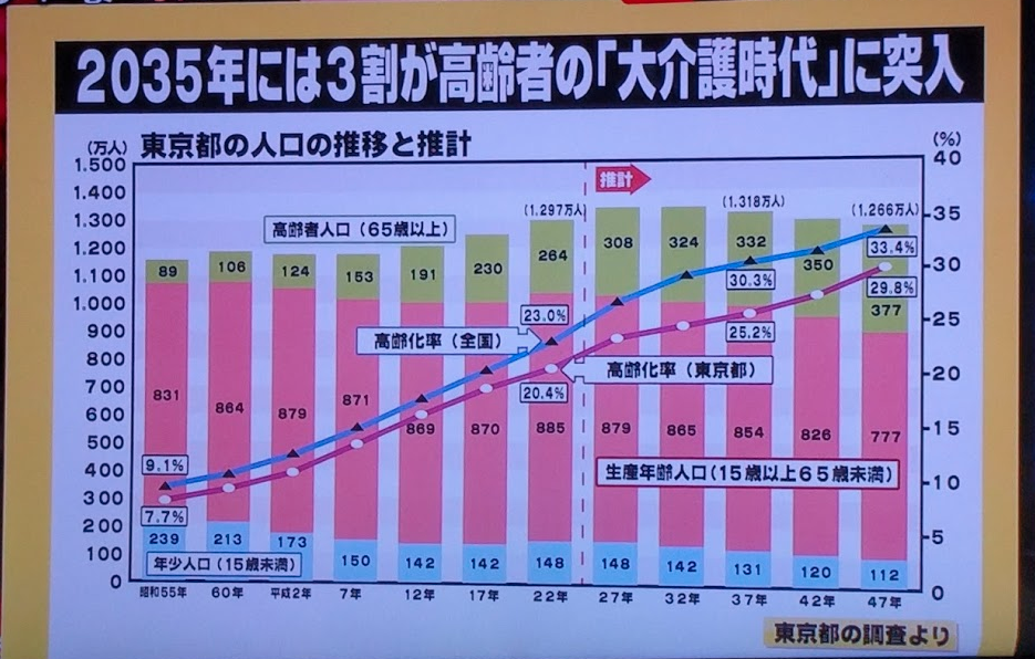 2035年3割が高齢者の「大介護時代」に突入する(東京都の場合)。