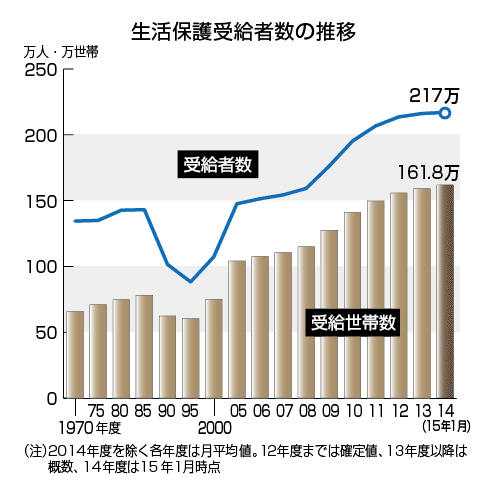 生活保護世帯161万8817世帯 受給者数は217万242人
