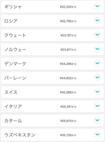 6万円あれば、ギリシャ、ロシア、からノルウェーやデンマークの北欧も。