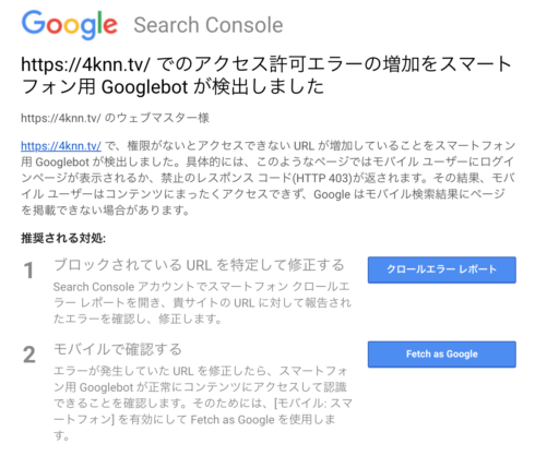 あまりにも、Google Search Consoleからのアラートがうるさいので、