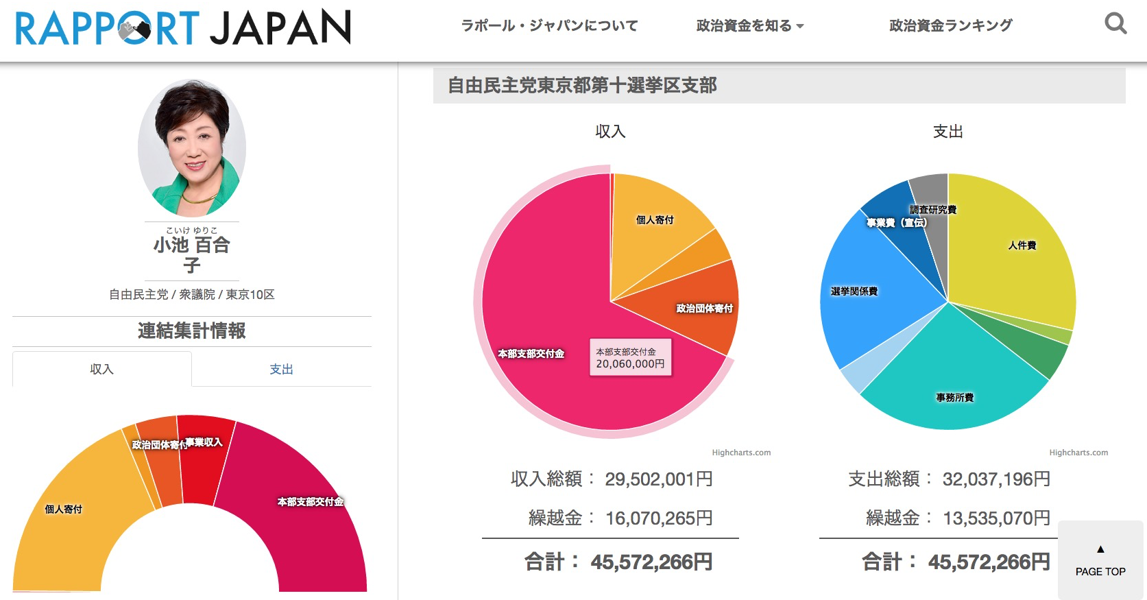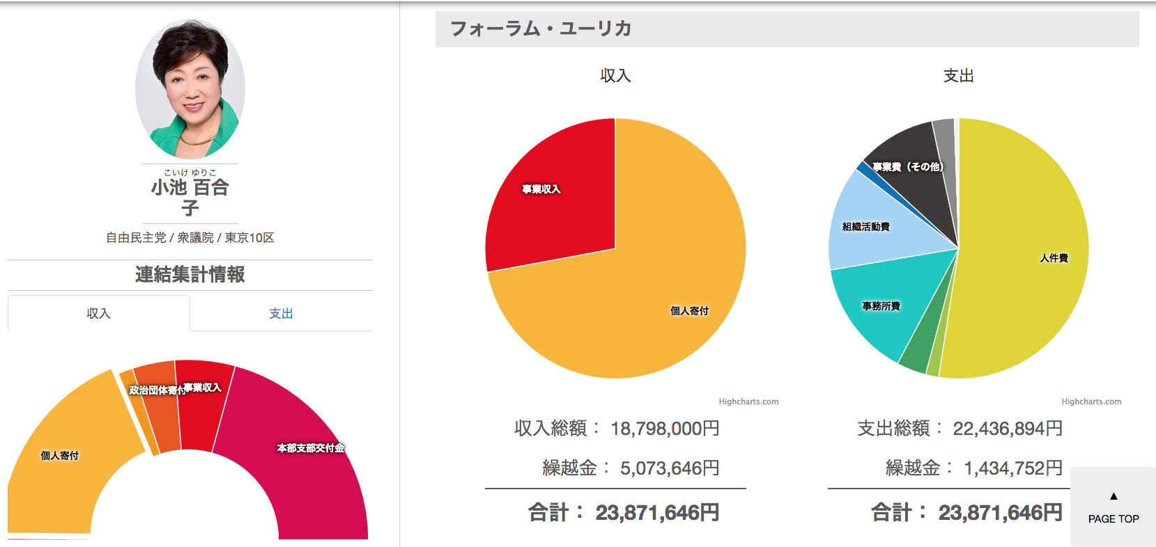で国会議員の収支報告から、どこから収入を受け、何に使っているのが一目でわかる。