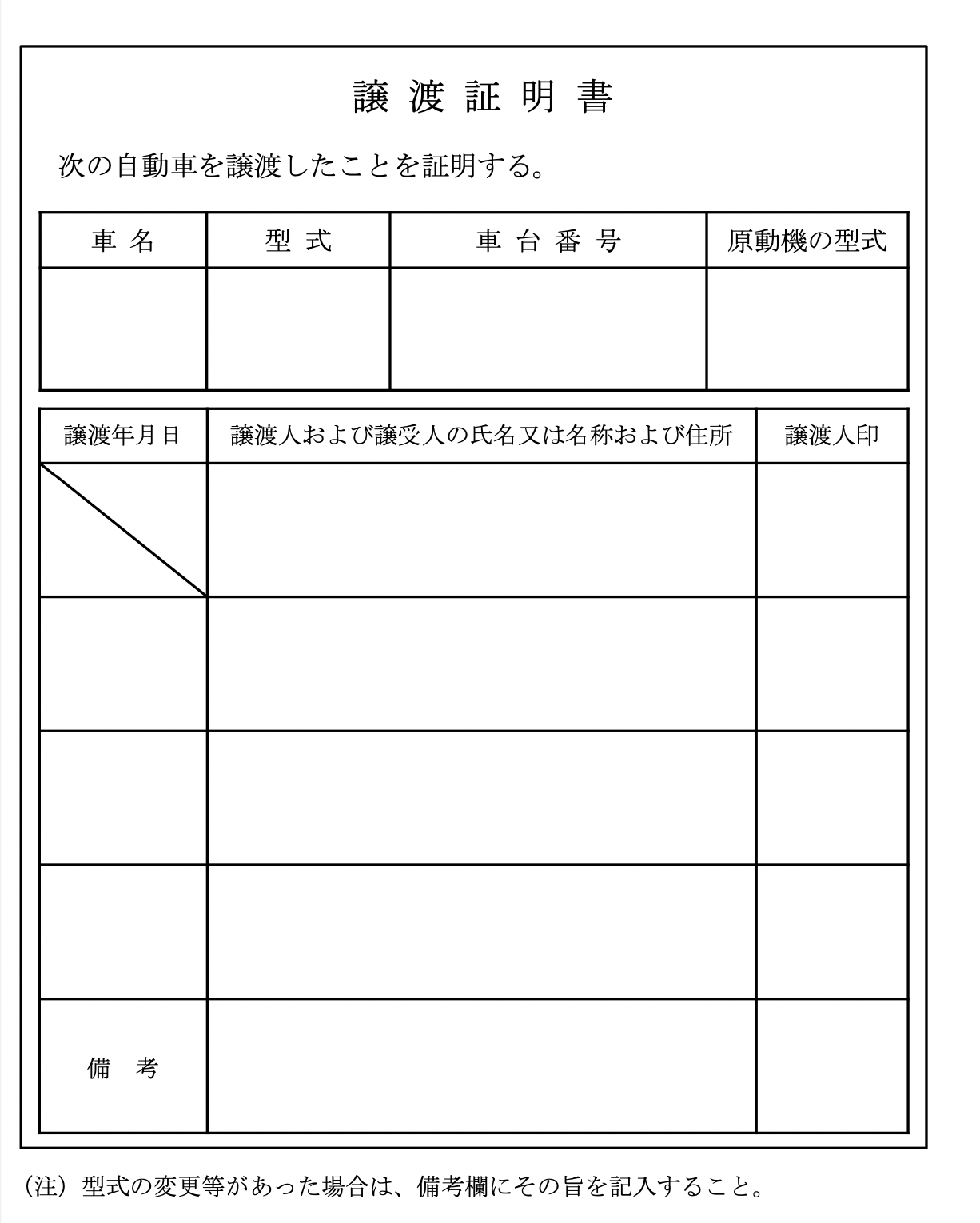 ※譲渡証明書は、旧・所有者から新・所有者へお車を譲渡することを証明する書類です。