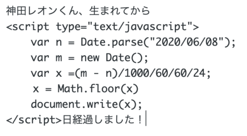 『X』に 『m』から『n』を引いた数値を1000で割り、60で割り、60で割り、24日で割り代入します。