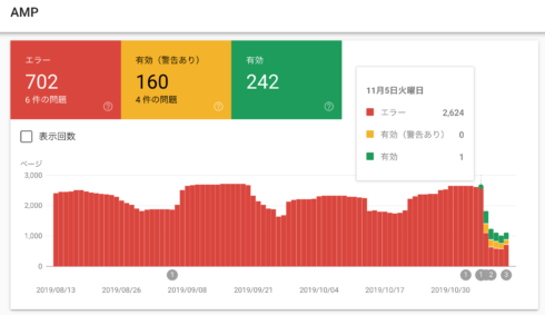 今日 2019年11月11日 702のエラーのうち、link rel=”canonical”で332のエラーがあるのでその施策