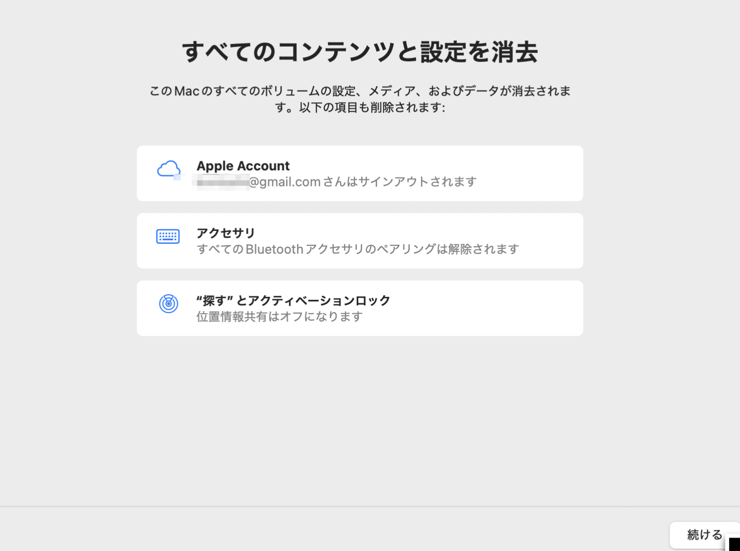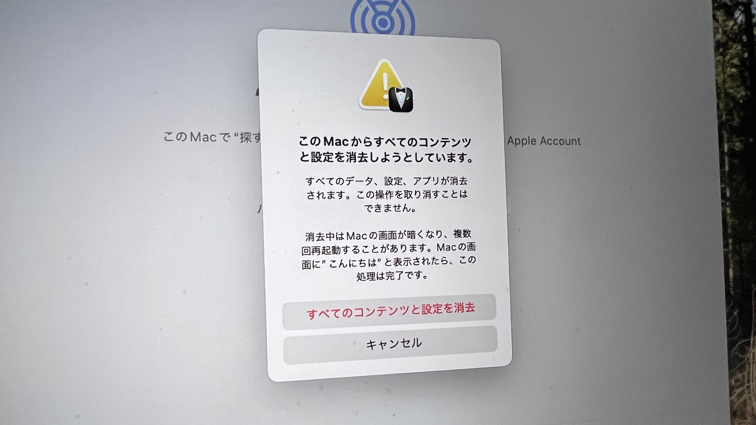 ■Appleシリコン M◯〜からは、『すべてのコンテンツと設定を消去』を使う