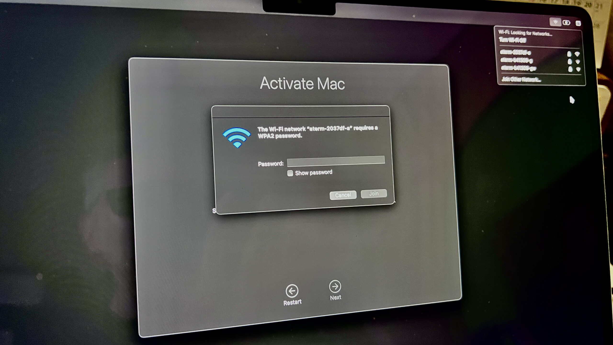 Wi-FiのPaswordを入力すると、『Restart』が自動的に行われる。