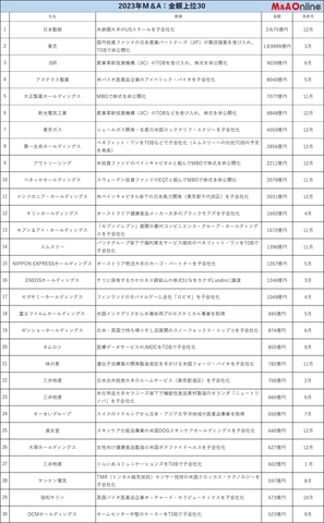 2023年上場企業のM&A金額上位30