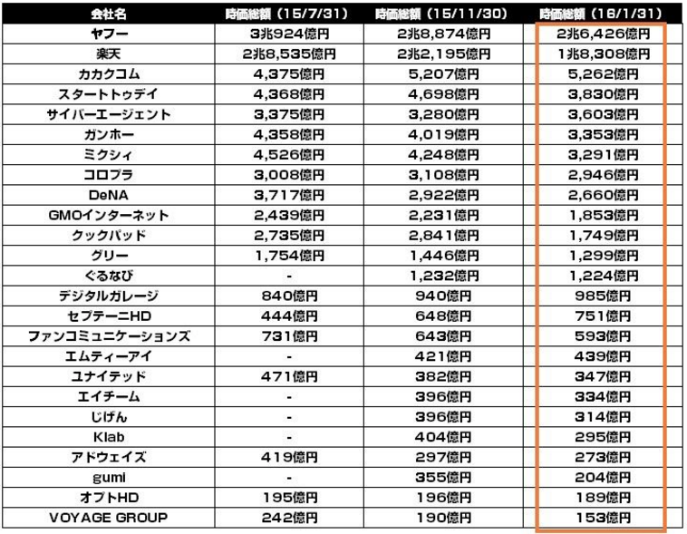 時価総額なう
