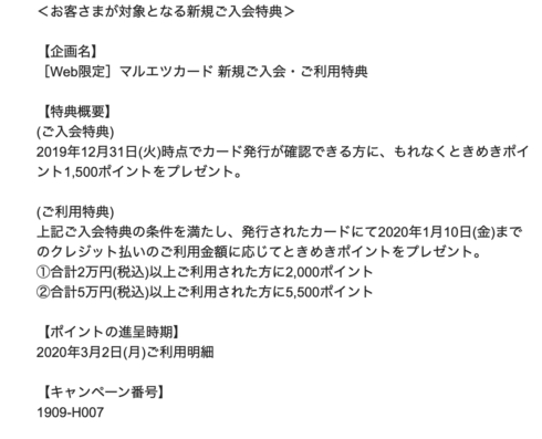 上記ご入会特典の条件を満たし、発行されたカードにて2020年