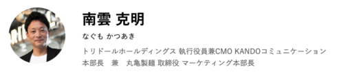 2018年、トリドールホールディングス入社。22年より現職。“感動(KANDO)”を起点に、感性とデータ両側面から持続的に選ばれる確率を高める「感動ドリブンマーケティング」を推進。ビジネスと企業価値をグロースさせ続けるマーケティングの革新と拡張に取り組む
