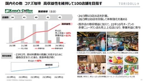 ■Kona s Coffeeは高収益で100店舗(2028年)を目指す 現在41店舗