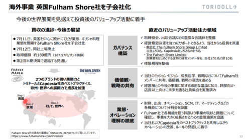 ■180億円で英国Fulham Shore社を子会社化