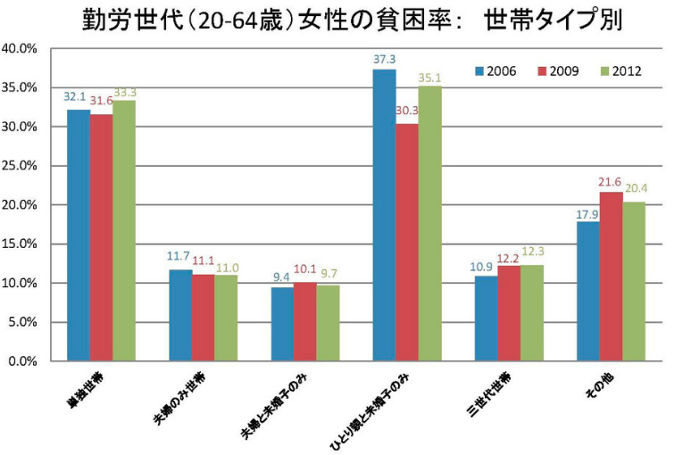 シングルマザー世帯の35.1% 約4割が貧困世帯貧困統計ホームページより