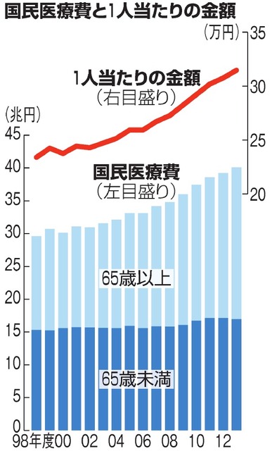 情報源: 医療費、初の40兆円超え 13年度、7年連続で増加:朝日新聞デジタル