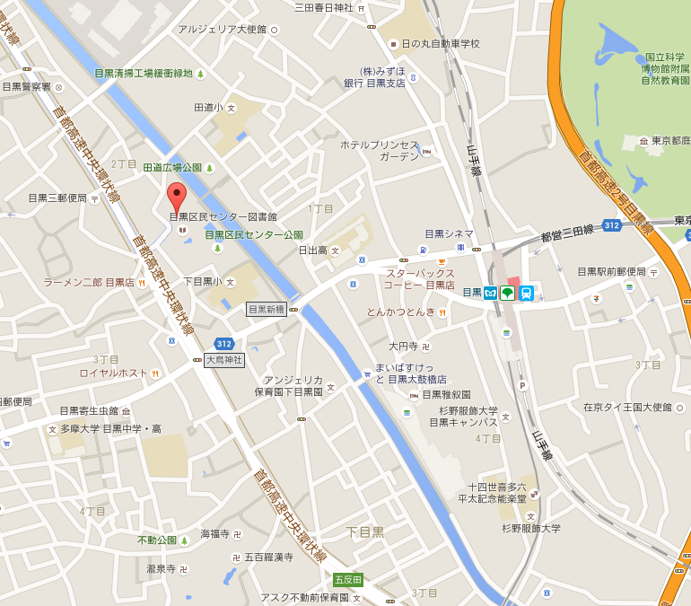 JR目黒駅から権之助坂を下り、目黒川を北へ
