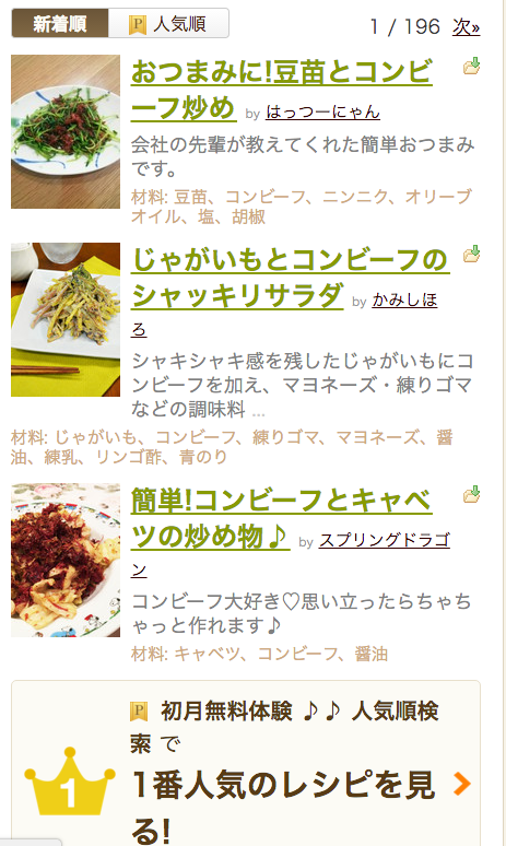 http://cookpad.com/search/コンビーフ