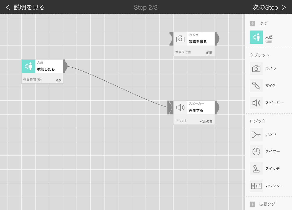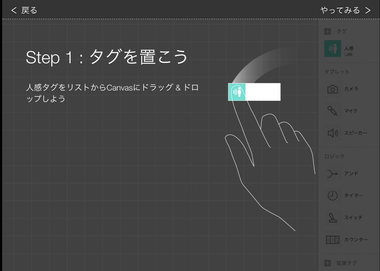人感センサータグをドラッグするらしい