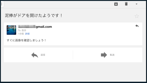 時すでに遅し、ボクの手元にはメールで、誰かが侵入していることのメールが飛んできました!
