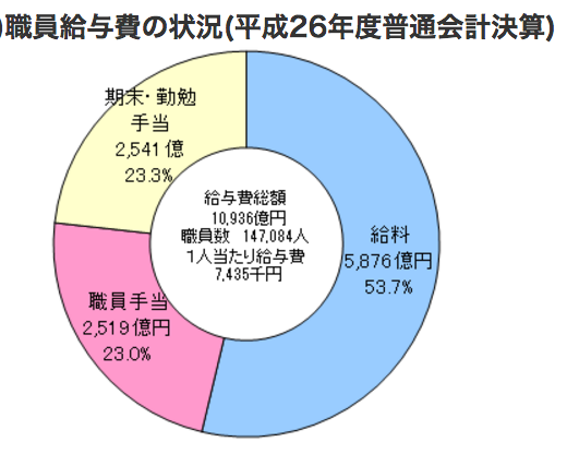 職員給与費は、26年度普通会計決算で1兆936億円