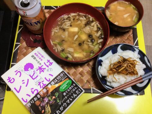 しかし、それでも日本食をベースに食べる一番よい方法を、テレビで見た料理研究家の土井善晴さんの「一汁一菜」と、一時帰国の間に、稲垣えみ子さんの「もうレシピ本はいらない」を手にとった。