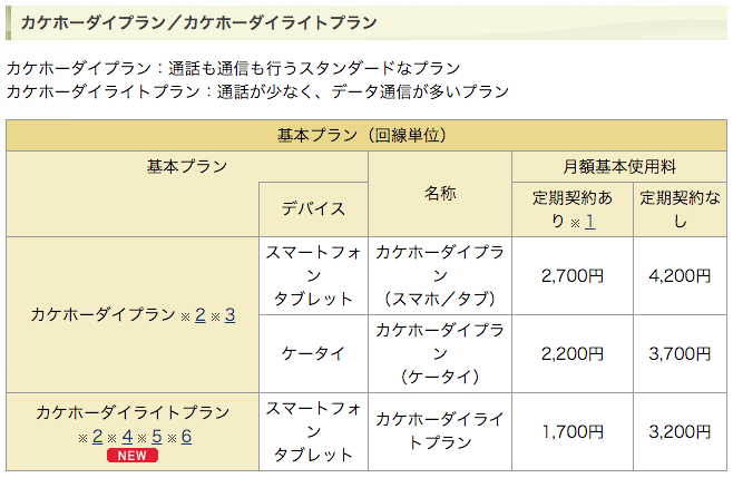 カケホーダイプラン 制限なしのカケホーダイ 2,700円