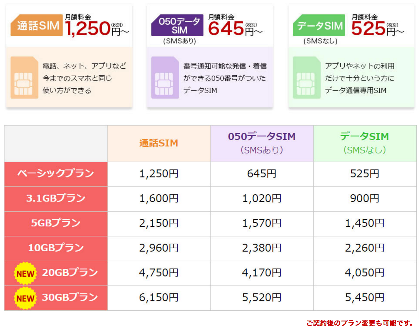 通話対応SIMプラン