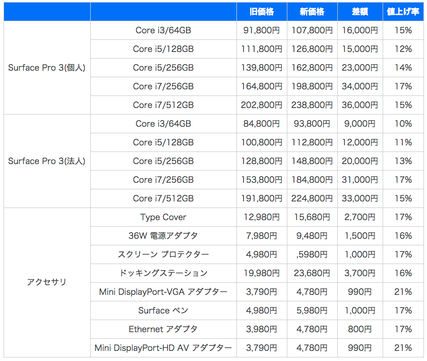 日本マイクロソフト、Surface Pro 3を最大36,000円値上げ