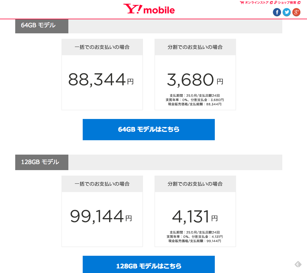 LTEプランを使わない分割であれば、 64GB 3,680円×24回(88,344円) 128GB 4,131円×24回(99,144円)