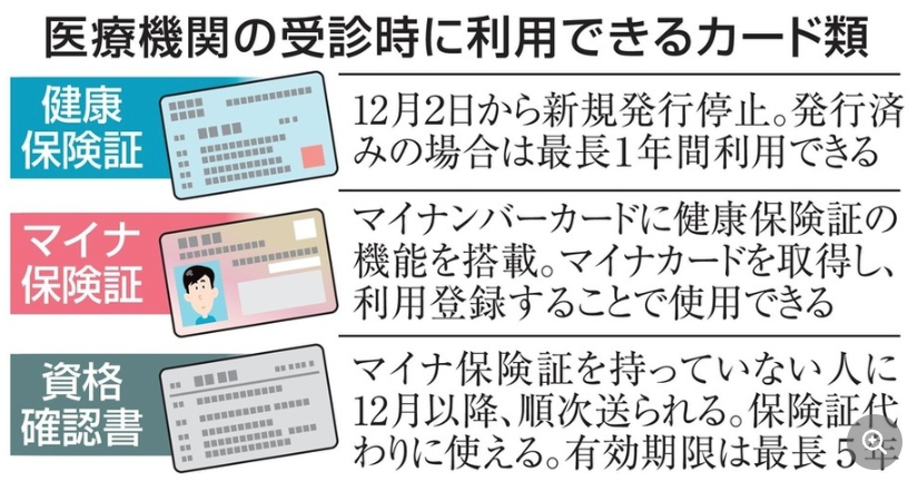 公的医療保険で受診時に使う現行の健康保険証が廃止(新規発行停止)される12月2日まで残り1カ月となった。マイナンバーカードに保険証機能を持たせたマイナ保険証が後継となるが、利用率は低迷が続く。政府は、発行済みの保険証が最長1年使えるほか、保険証代わりの「資格確認書」を送るなど代替手段があることを強調。福岡資麿厚生労働相は1日の記者会見で「国民の不安解消に向け丁寧な対策を行う」と述べた。