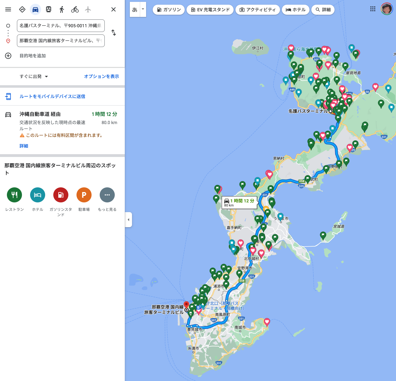 名護から那覇空港の距離を都心の感覚で考えてみたら、