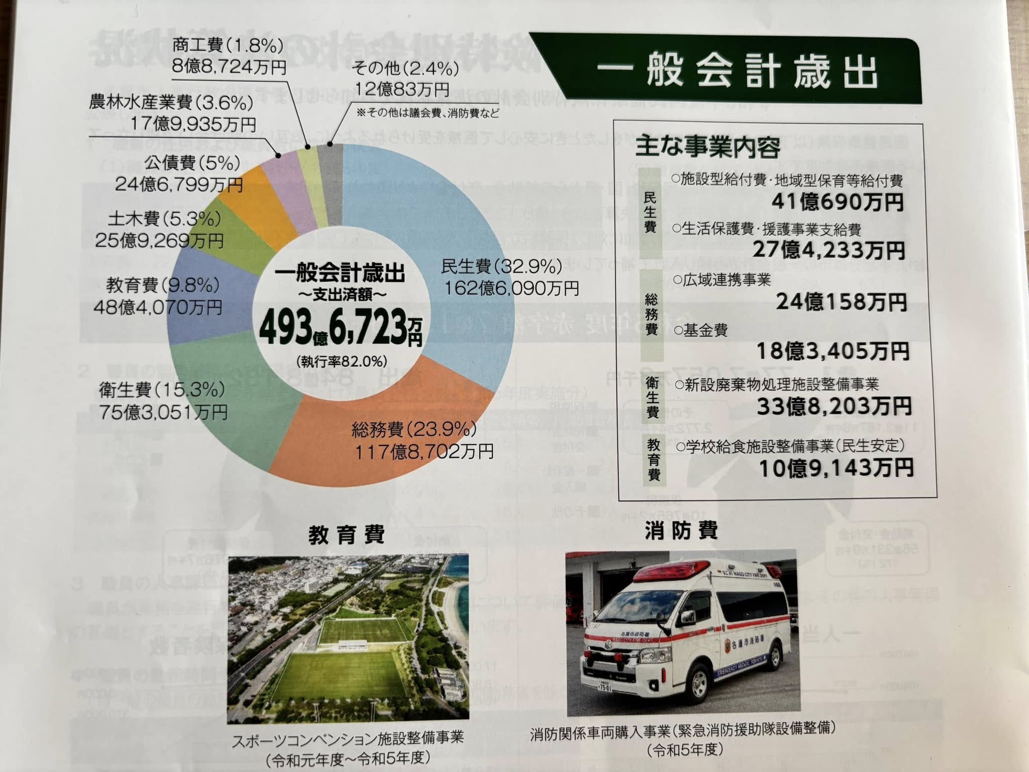 令和5年2023 名護市の決算 歳出493.6億円