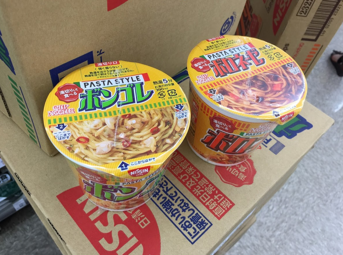 カップヌードルの容器でラーメンはありなんだけど、パスタをこの容器で食べるというのは、なんだか、カップヌードルのライス版を食べた時の違和感を感じた。