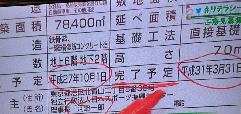 オリンピックは、平成32年(2020年)7月24日(金)開幕なので、2019年9月6日~10月20日ラグビーのワールドカップに間に合わせようとしているのがすでに織り込み済みになっている。
