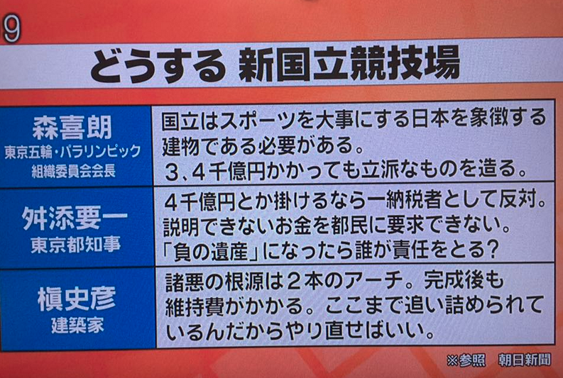 オリンピック予算が、そもそも3600億円なのに、4000億円も国立競技場にかける意味がわかる人は森喜朗さんだけなんですから。