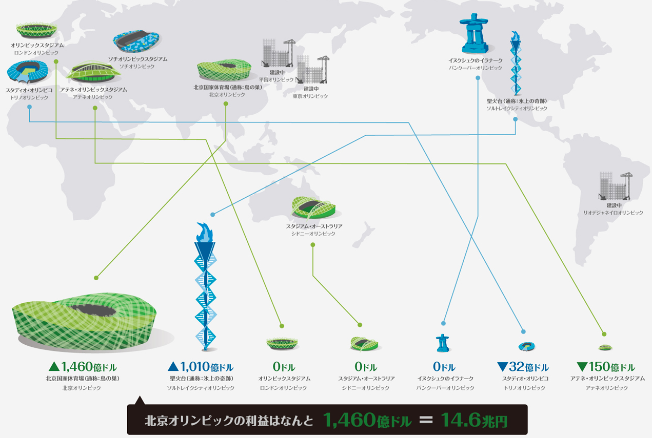 北京オリンピックは、1460億ドル=14.6兆円も利益を生み出している。