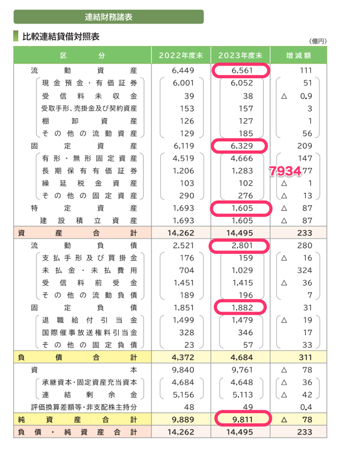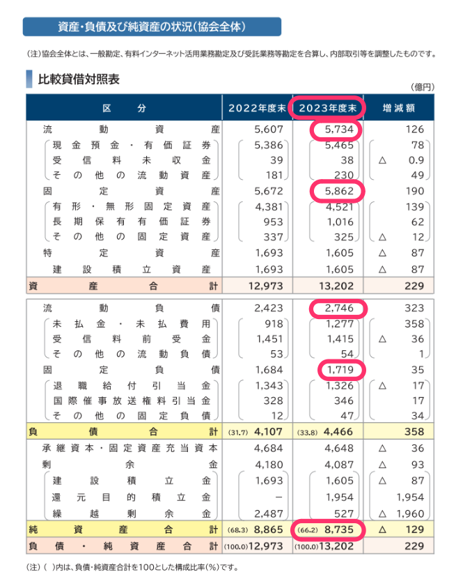 NHK単体の純資産8,735億円 に対し、グループ会社の連結決算では、純資産 9,811億円(113.31%)