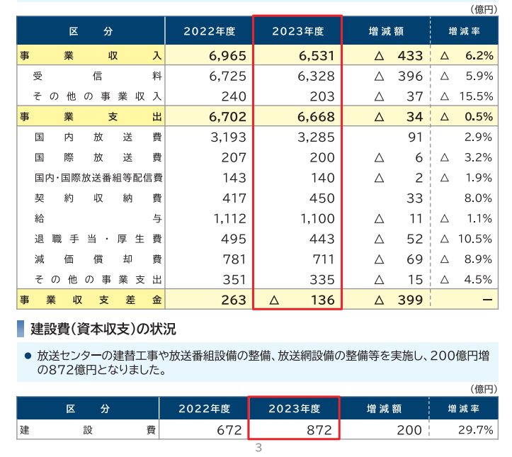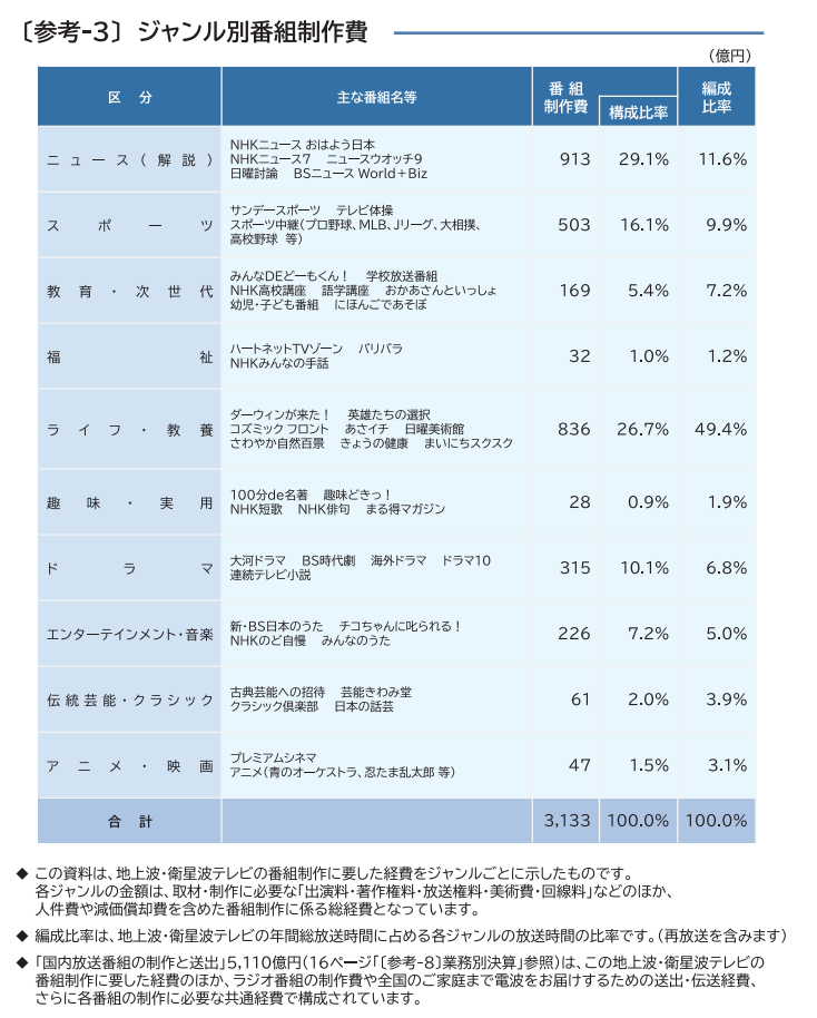 ■NHK『国内放送費』用は、3,285億円 事業収入6,531億円の50.2%