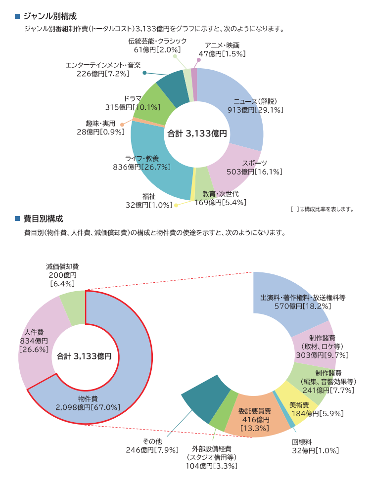 ■番組制作費 3,133億円の中に人件費834億円 22.6%が含まれている
