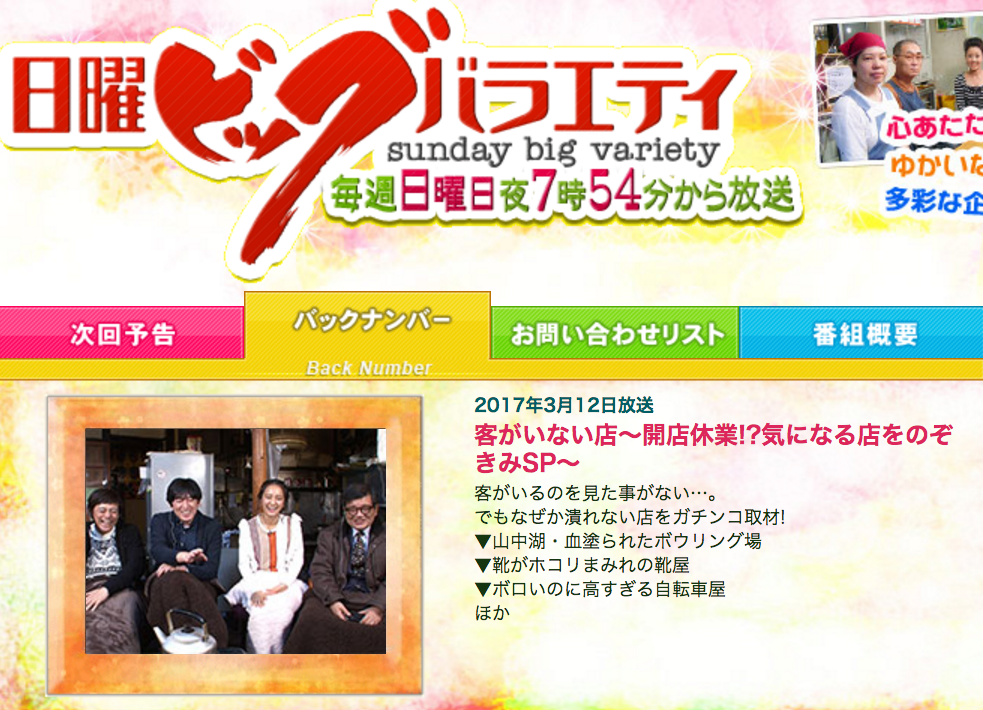 客がこないのに、潰れないお店の番組。