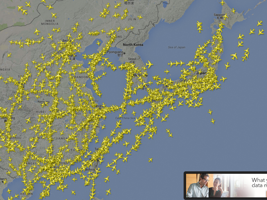 しかも、気になってその時間にどれだけの飛行機が空をとんでいたのかをリアルタイム表示の