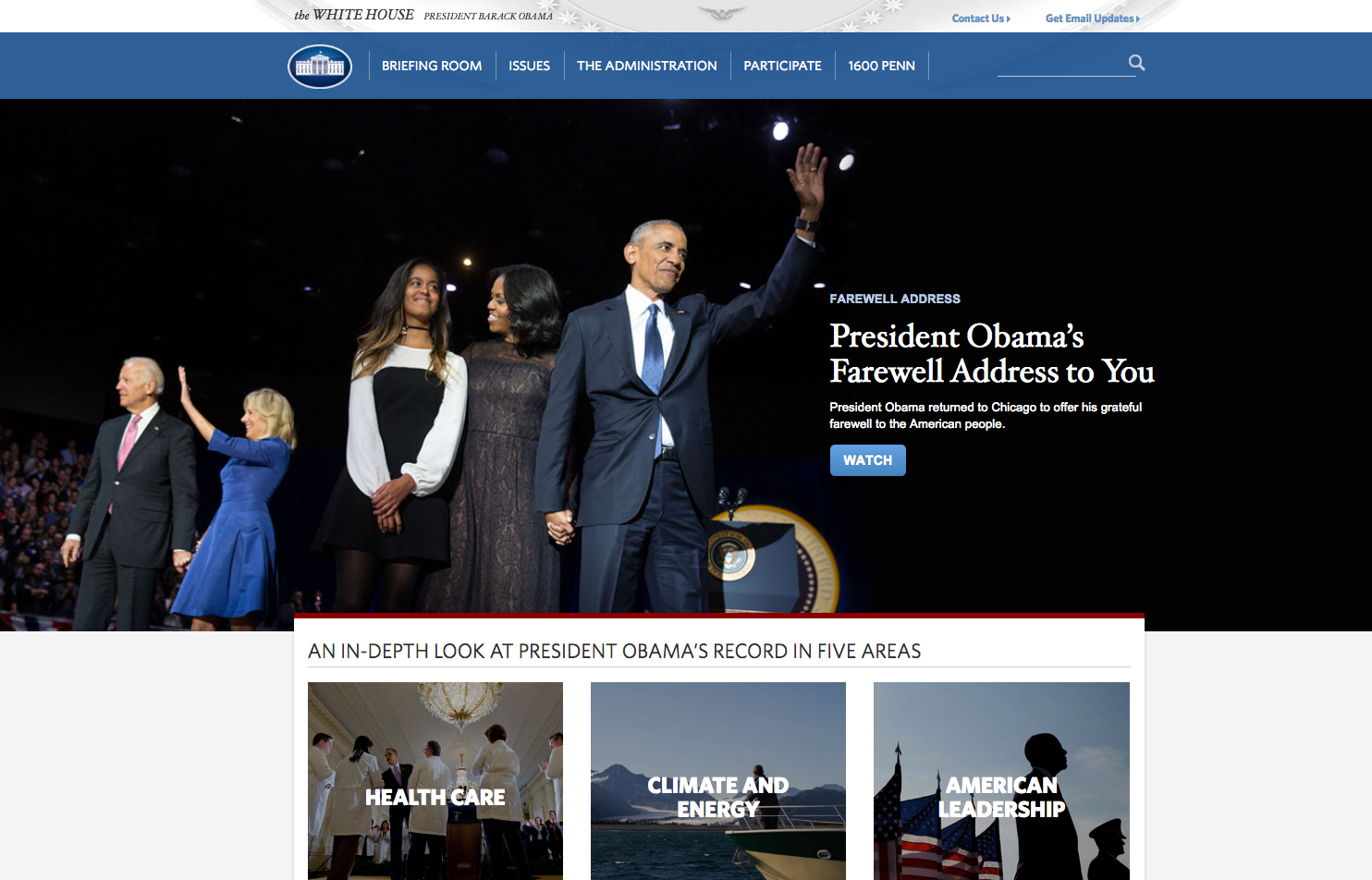 あと数時間で、見ることができなくなるオバマ大統領時代のホワイトハウス.gov