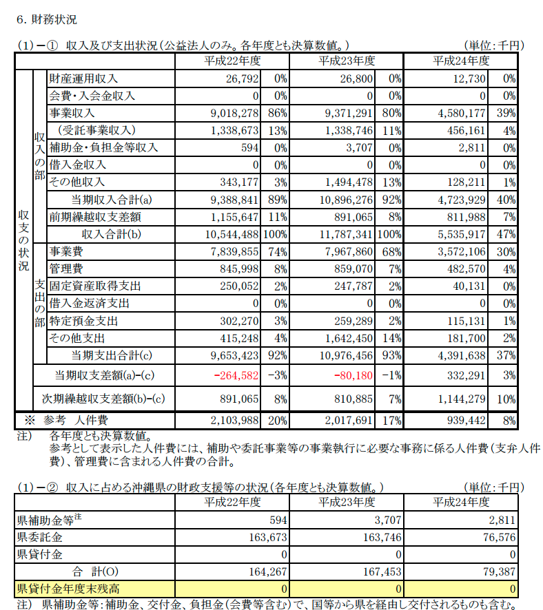 国の補助金と沖縄県の出捐金(しゅつんきん:見返りをえない出資金、それぞれ6億円)および財団12億円の自己資本により構成されている。