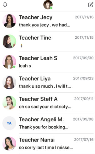 ボクのSkypeには、ズラリときれいな女性の先生たちが並んでいる…。