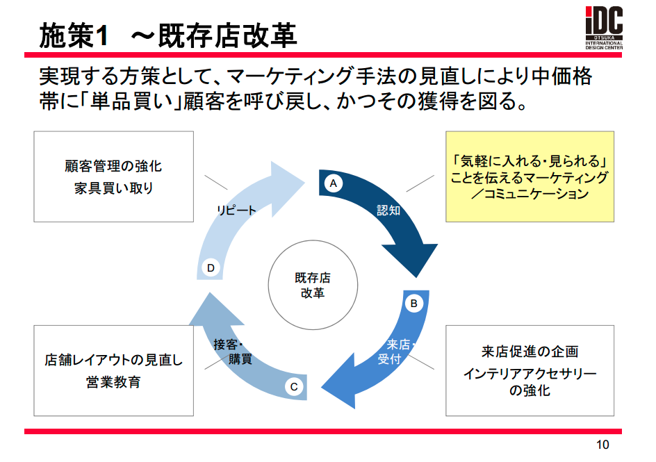先決なのは赤字にならないほどの適切な規模にまで縮小させ、徐々にビジネスモデルをニトリ・IKEA化していくことだ。低価格路線で攻めるビジネスモデルはまだ成長期にあるので転換し終わったら、そのタイミングで再びシェアを奪いにいけばいい。