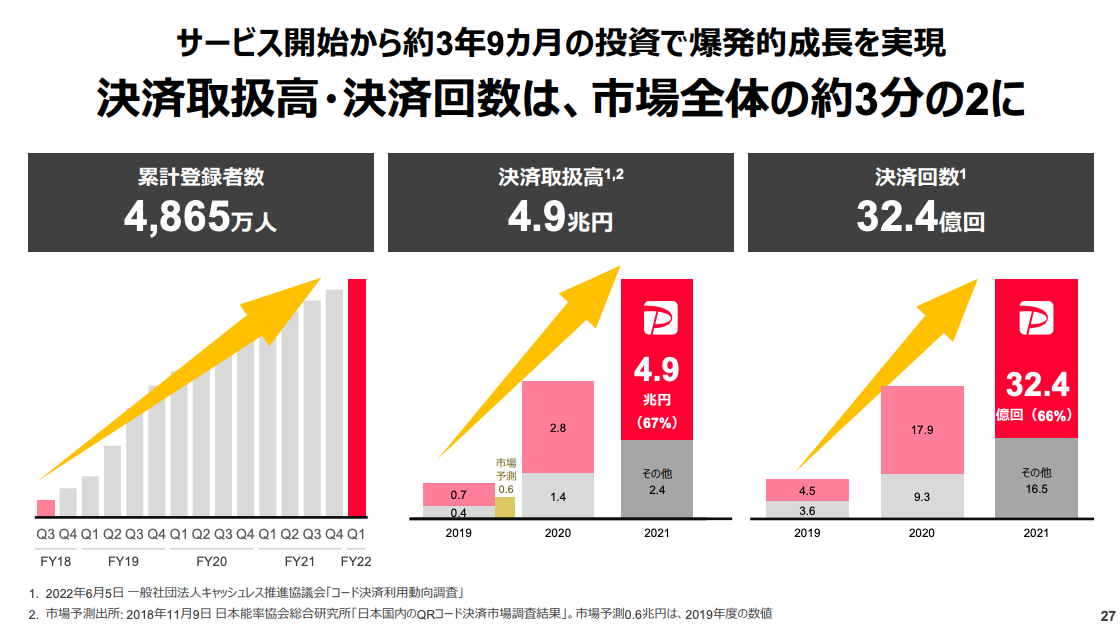 PayPay経済圏 LINE9,200万人、PayPay4,865万人、Yahoo! 5,500万人